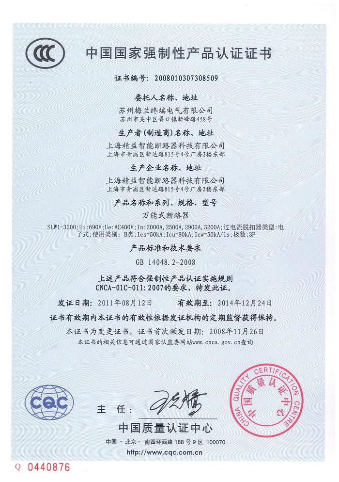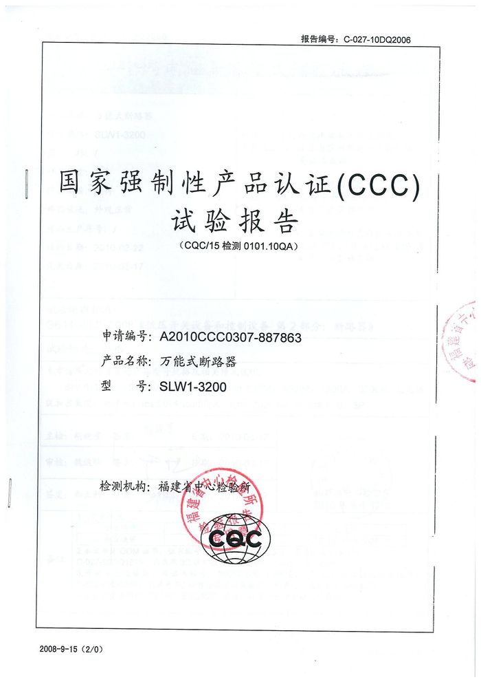 SLW1-3200萬(wàn)能斷路器資質(zhì)證書(shū)
