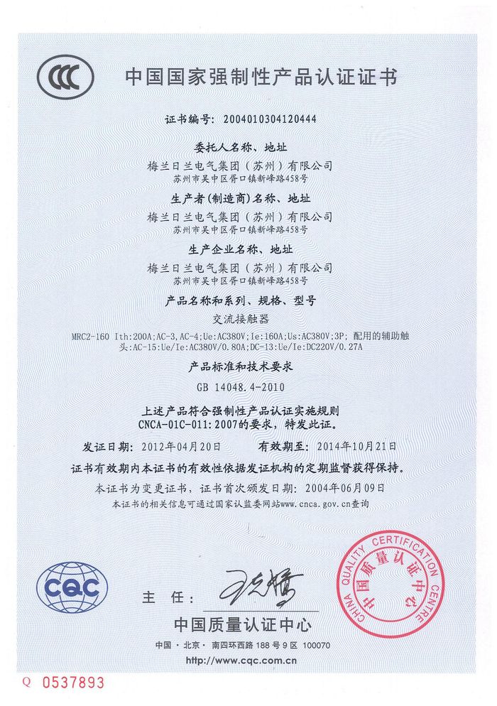 MRC2-160交流資質證書