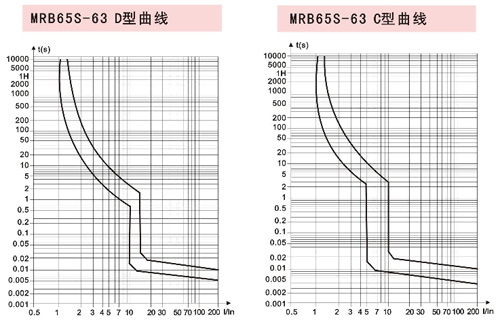 額定運行短路分斷能力lcs:(6“40A) 6000A,(50“63A) 4500A。過電流保護特性