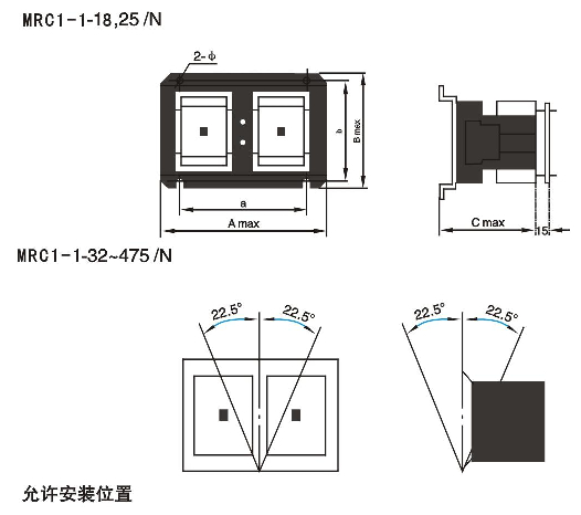 注:35mm安裝軌安裝或用75mm安裝軌安裝