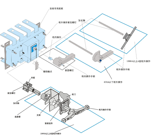 125A-630A適用于電路的接通與分?jǐn)嚯姎飧綦x,1000A以上只適用于電氣隔離。125A-630A有三極、四極(三極+可通斷中性極)。630A以下可根據(jù)需要提供有觀察窗口的產(chǎn)品,直接觀察觸頭的通斷狀態(tài)。可根據(jù)需要配裝兩組輔助觸點(diǎn)。電氣性能與機(jī)械性能和MRGL-125“1600A電氣性能與機(jī)械性能相對(duì)應(yīng)。